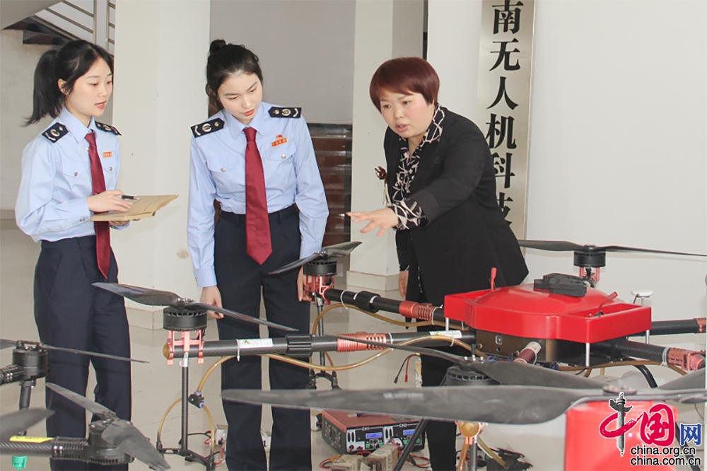 西南无人机科技有限公司财务负责人向上门宣传退税政策的税务干部介绍产品情况。
