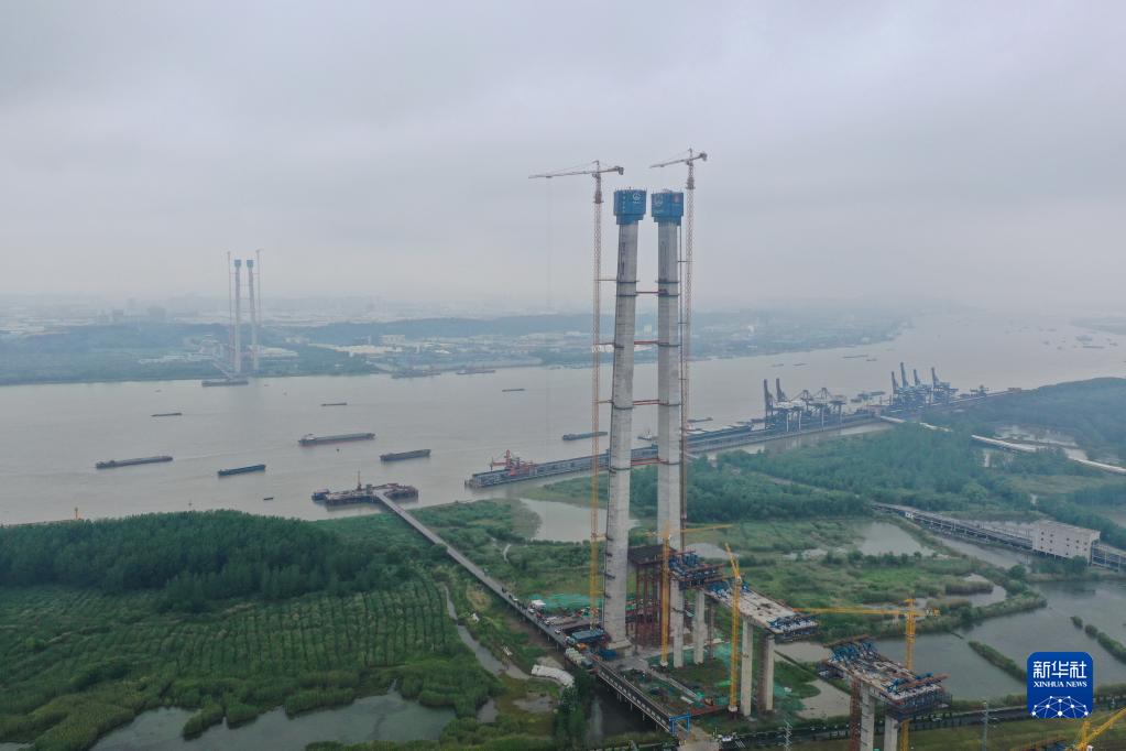 当日,由中铁大桥局等单位承建的南京仙新路过江通道主桥主塔全部封顶,工程下一步将进入主桥索梁施工阶段。