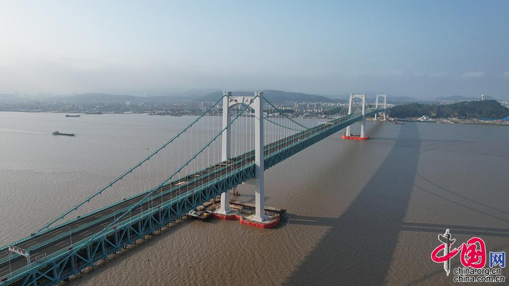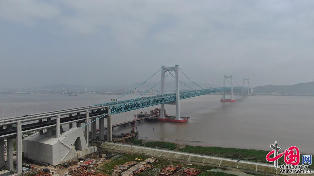 瓯江北口大桥位于浙江省温州市瓯江出海口,起于乐清黄华,止于灵昆岛,全长7.913公里,上层甬台温高速公路复线是国家高速公路G15w3的重要组成部分,设计时速100公里,桥面宽度为33米,双向六车道;下层南金公路是国家公路网规划中新增G228国道在浙江省境内的重要组成部分,设计时速80公里,桥面宽度为34.3米,双向六车道。中铁大桥局瓯江北口大桥项目经理张海亭介绍,瓯江北口大桥规模宏大、技术复杂,结构新颖独特,创下“世界首座三塔四跨双层钢桁梁悬索桥”“世界首次在多塔连跨采用大刚度混凝土中塔”“世界首例伴随台风影响强潮河口深厚软土超大沉井”三项世界纪录。“这是目前我国乃至世界上技术难度最大、建造工艺最为复杂的桥梁之一,为今后跨海通道的建设提供了施工经验。”张海亭说。
