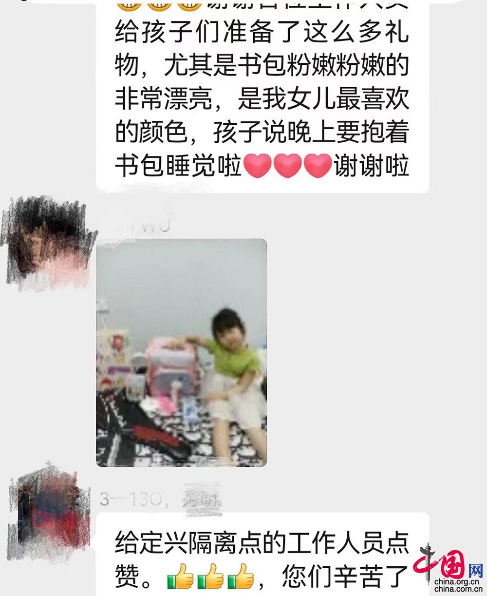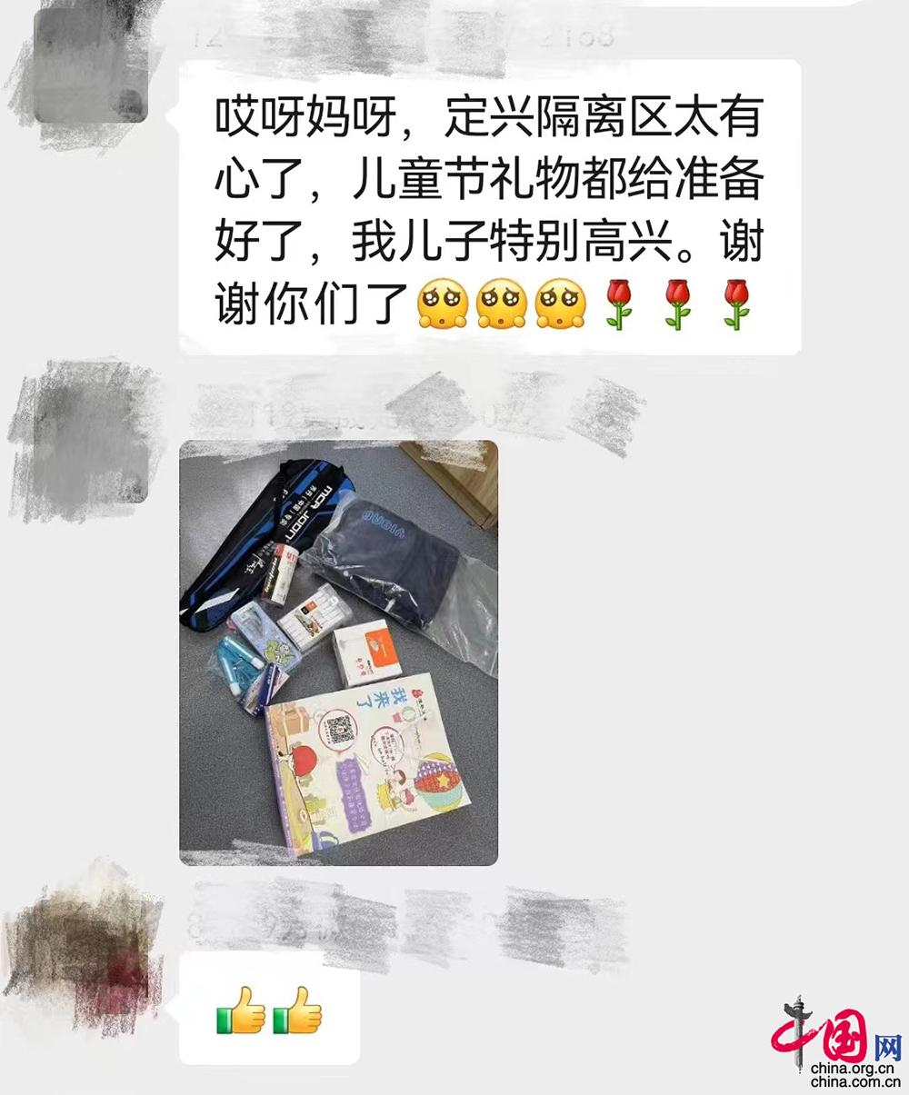 “一大早就收到‘大白’送来的儿童节礼物,这个儿童节跟叔叔阿姨们一起跟病毒‘作战’,过得特别有意义!”收到礼物的小朋友开心地说道。据了解,“六一”儿童节来临之际,丰台区为定兴集中隔离医学观察点的每位小朋友送上“爱心礼包”,礼包里有笔记本、画笔、水果和各种零食等。同时,来自中国航天科工集团七三一医院和北京天坛医院医疗保障团队的阿姨和姐姐们,在“大白”工作服手绘“冰墩墩”“皮卡丘”“机器猫”等卡通图案,配上热情洋溢的文字,向小朋友们寄予节日的祝福。