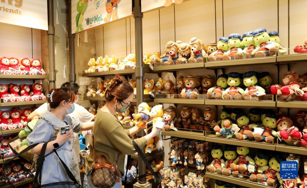 6月10日,游客在迪士尼世界商店内选购玩偶。 新华社记者 方喆 摄