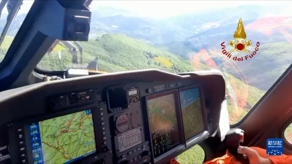 6月10日,消防部门人员驾驶直升机在意大利中部地区搜寻失踪的直升机。