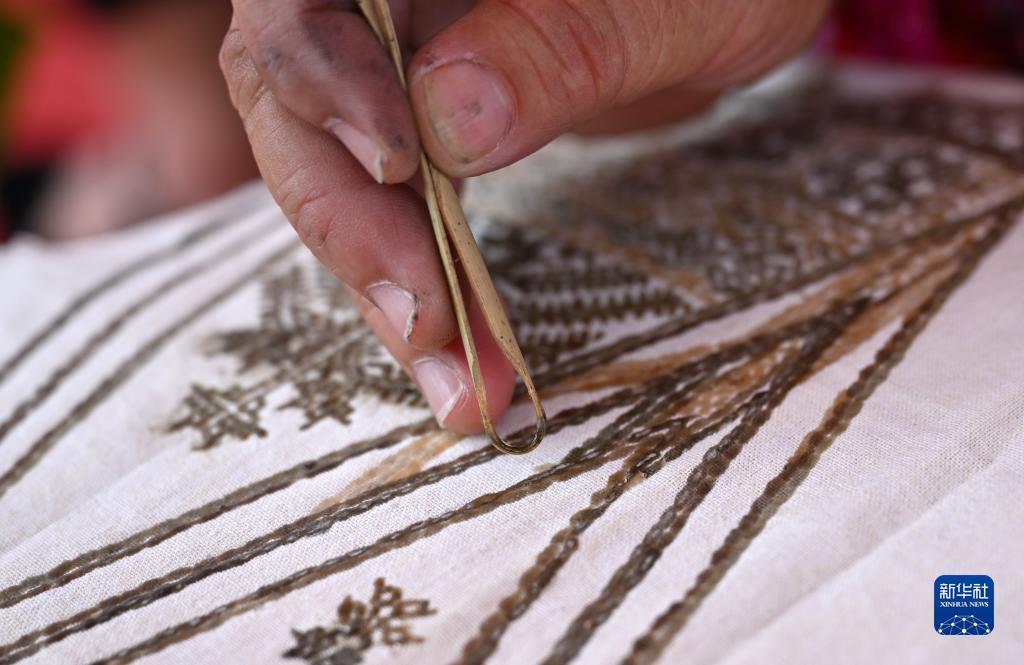 这是活动上展示的苗族传统刺绣蜡染技艺(6月11日摄)。