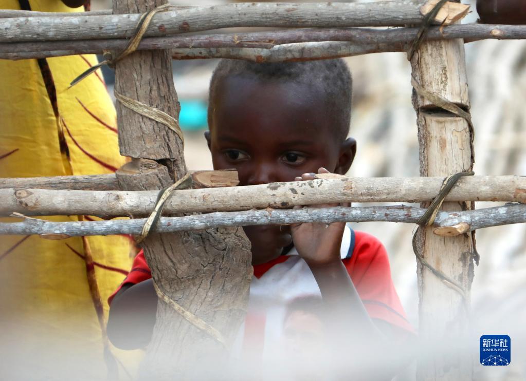 这是3月23日拍摄的遭受旱灾的肯尼亚基利菲郡村庄中的儿童。