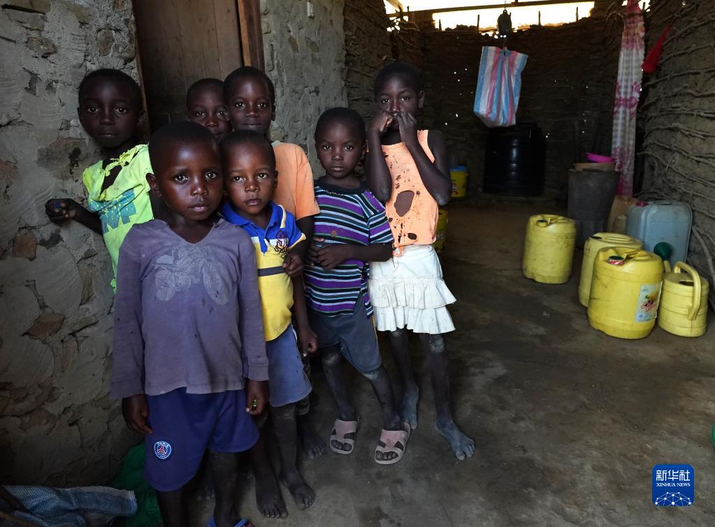 这是3月23日拍摄的遭受旱灾的肯尼亚基利菲郡村庄中的儿童。