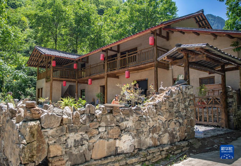 这是6月15日在重庆市城口县东安镇黄金村拍摄的利用闲置土坯房整修中的民宿。