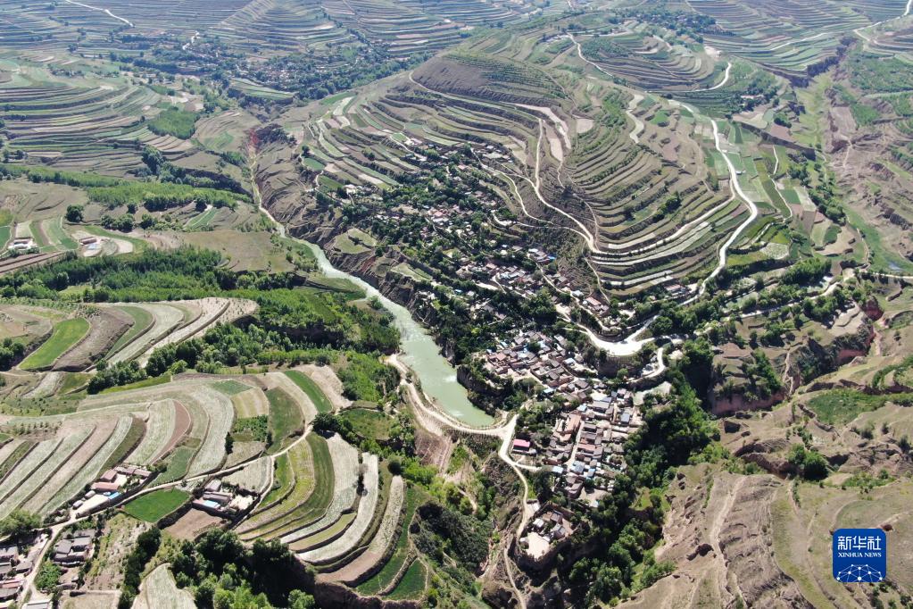 6月15日在甘肃省定西市通渭县榜罗镇拍摄的张川村许堡社风景(无人机照片)。