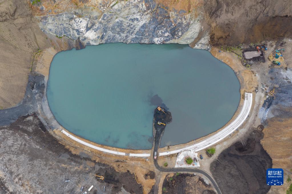 6月17日拍摄的正在施工的翡翠湖矿坑森林公园项目工地(无人机照片)。