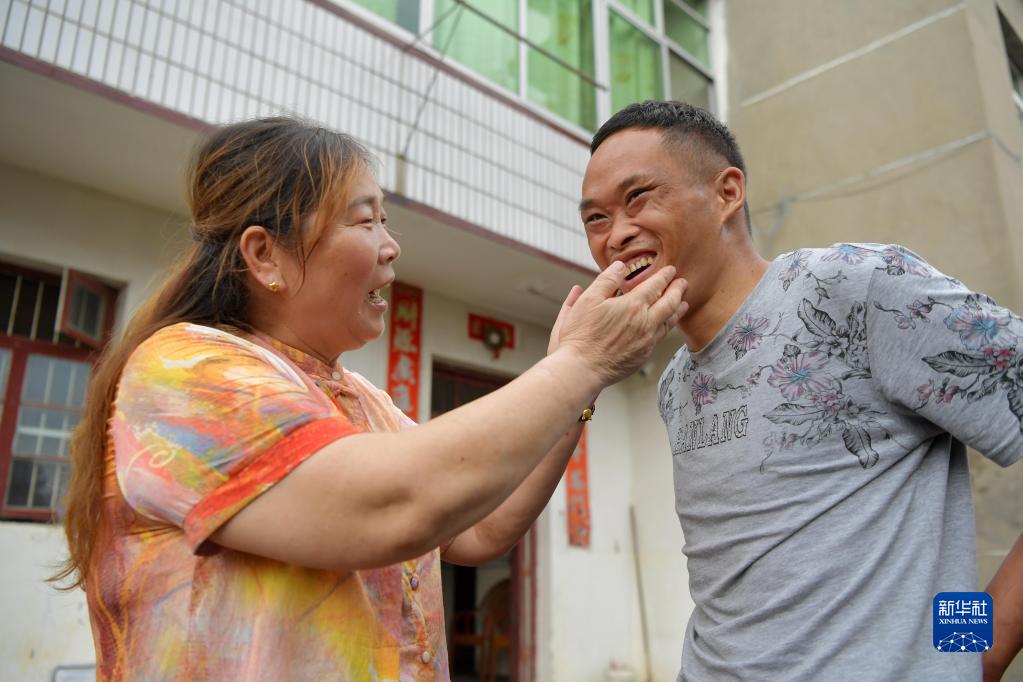 在江西省南昌市南昌县三江镇松林村,徐美花嘱咐王水根不要乱跑(6月18日摄)。新华社记者 彭昭之 摄