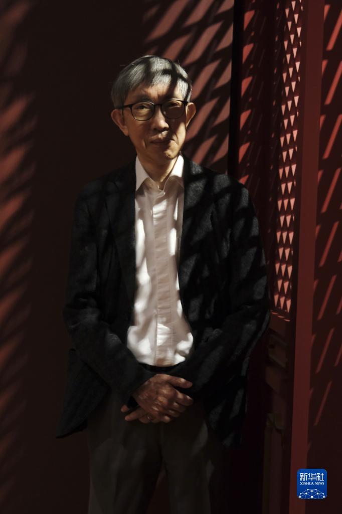2022年4月28日,香港故宫文化博物馆设计师严迅奇在展厅内接受新华社记者采访。 新华社记者 王申 摄