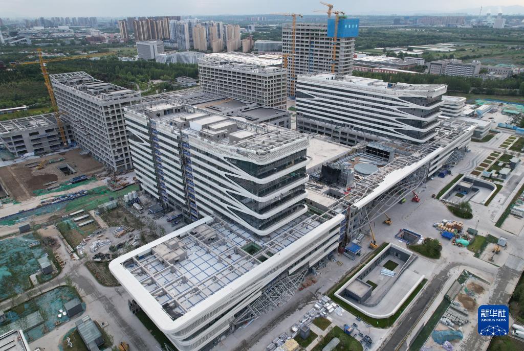 建设中的西安市红会医院高铁新城院区项目(6月21日摄,无人机照片)。