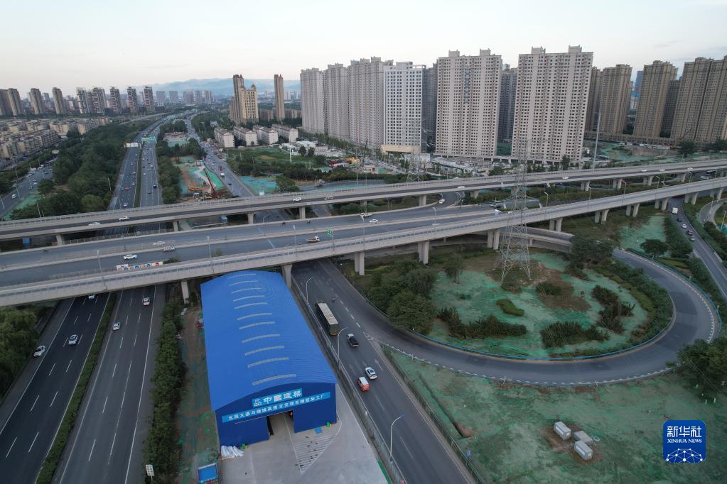 建设中的西安北辰大道与绕城高速立交工程(6月21日摄,无人机照片)。