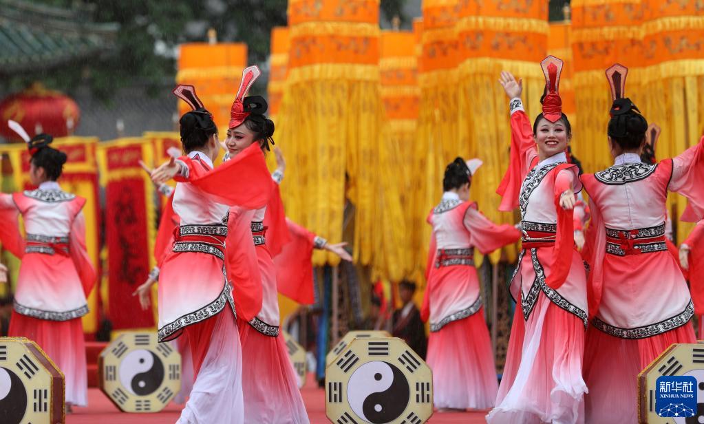 6月22日,演员在公祭伏羲大典上表演乐舞告祭仪式。
