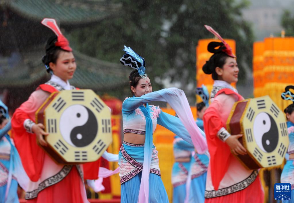 6月22日,演员在公祭伏羲大典上表演乐舞告祭仪式。