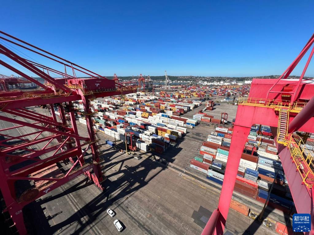 这是4月21日拍摄的南非德班港集装箱码头(手机拍摄)。