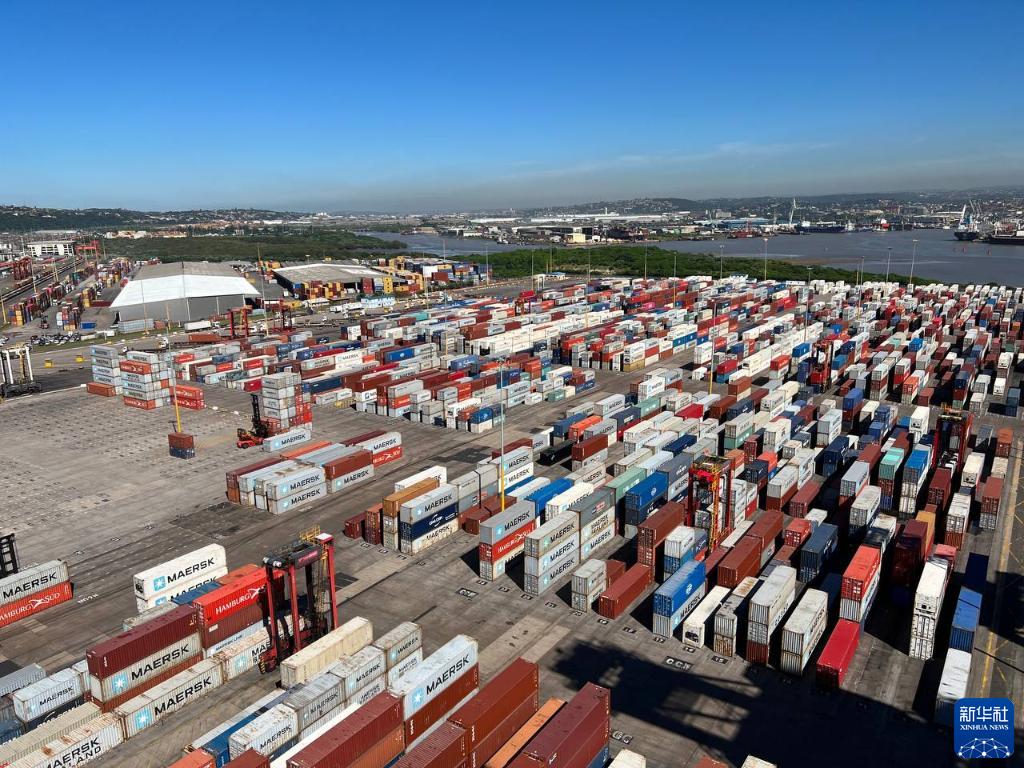这是4月21日拍摄的南非德班港集装箱码头(手机拍摄)。