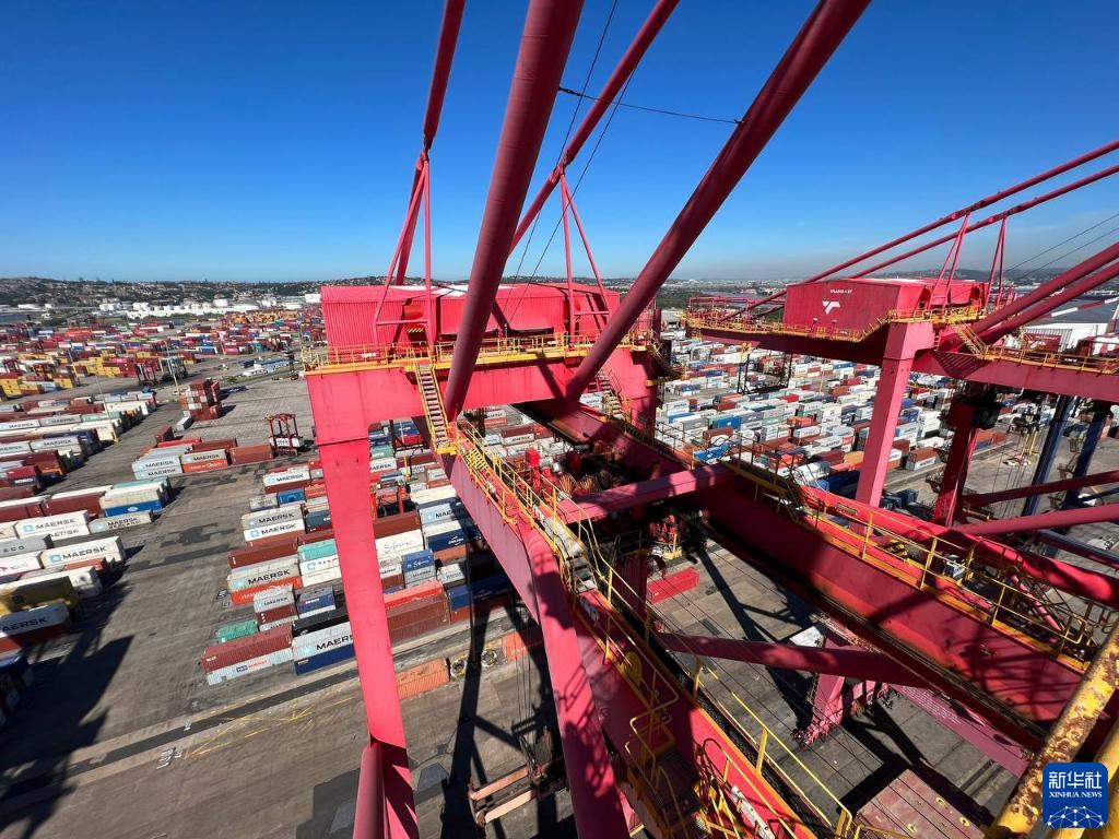 这是4月21日拍摄的南非德班港集装箱码头(手机拍摄)。