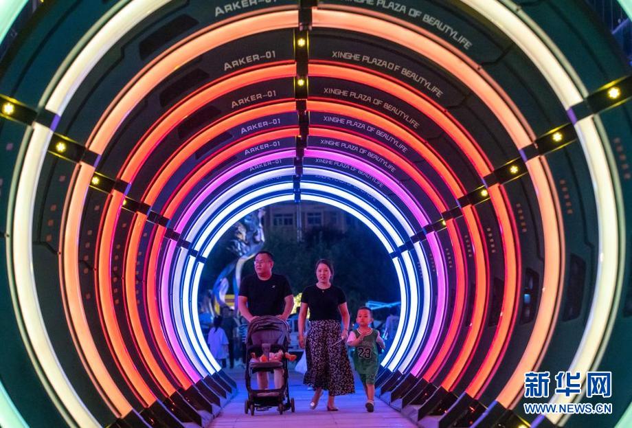 夜市上的亲子时光。新华网 发(闫鑫 摄)