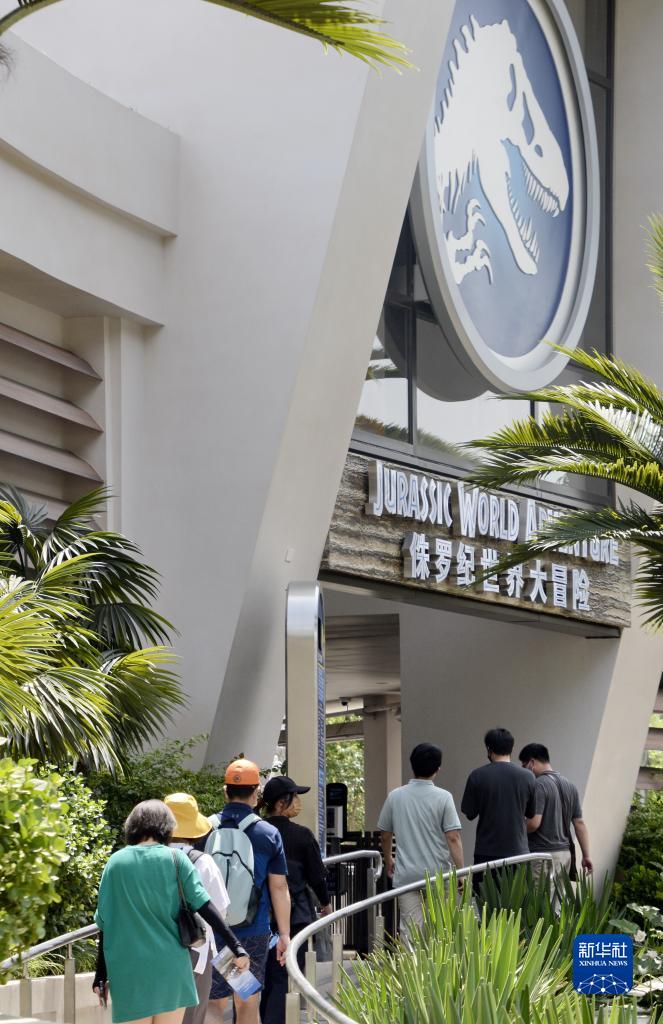 游客在北京环球影城主题公园内游览(6月25日摄)。