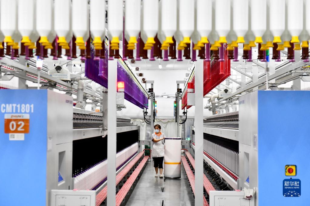 6月26日,山东正凯新材料股份有限公司工作人员在加工高端纱线。