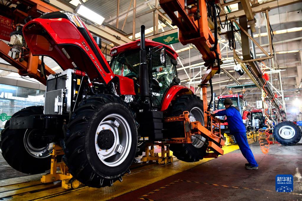 2月15日,在山东五征集团山拖农业装备有限公司,工人在生产线上装配农用拖拉机。