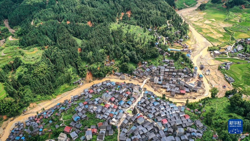 这是遭受洪涝灾害的从江县丙妹镇龙江村(6月29日摄,无人机照片)。