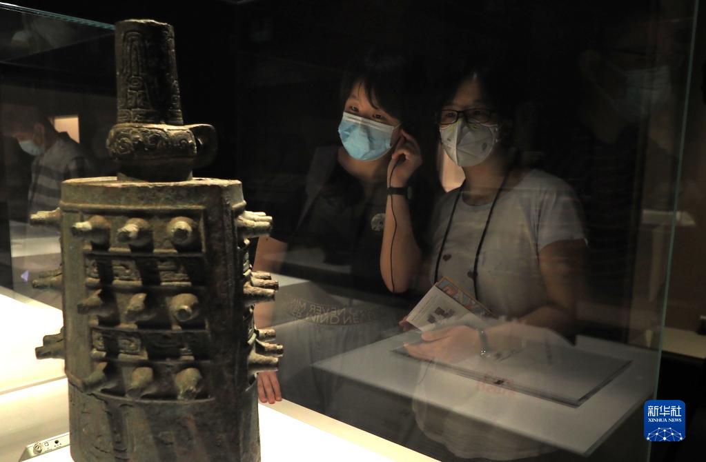 7月1日,观众在当日恢复开放的上海博物馆展厅内观看“盛世芳华——上海博物馆受赠文物展”。