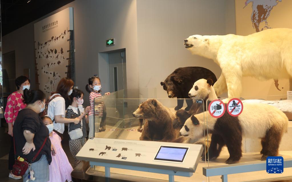 7月1日,观众在当日恢复开放的上海自然博物馆参观。