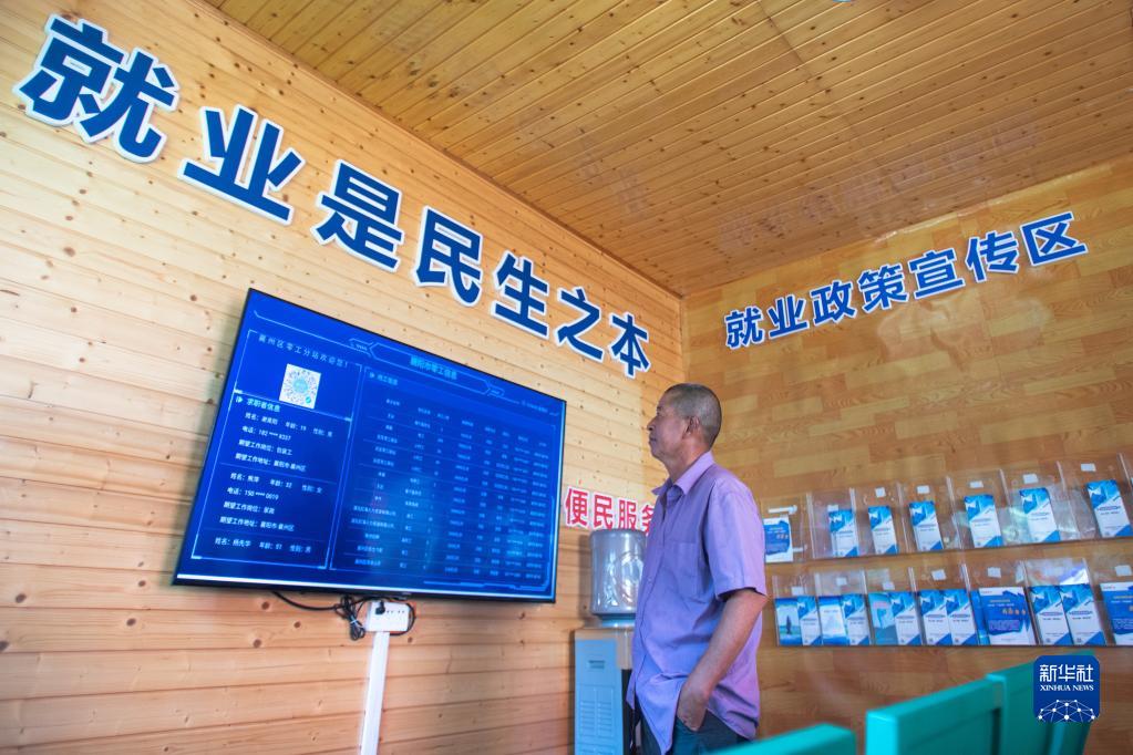 6月30日,务工人员在湖北省襄阳市云湾社区“零工驿站”查看招聘信息。