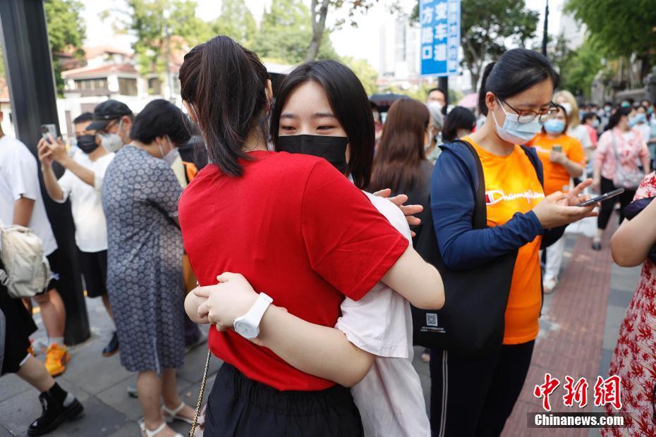 考生在上海市第三女子中学门口与老师相拥。殷立勤 摄