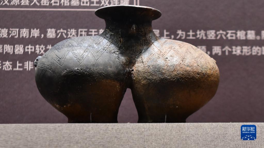 这是6月29日拍摄的西藏博物馆收藏的双体陶罐。该陶罐出土于西藏昌都卡若遗址,是新石器时代西藏陶器的代表作。