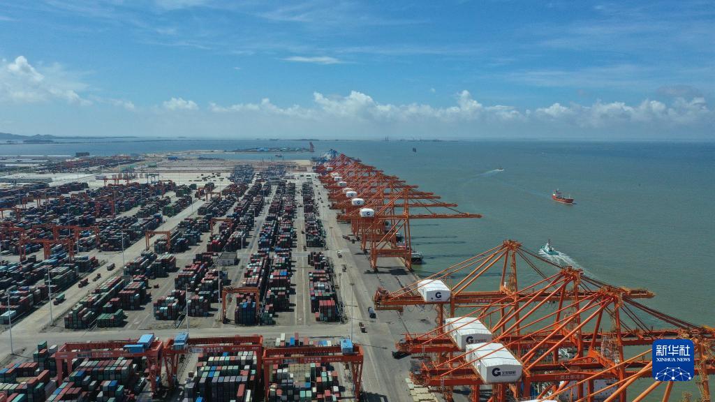 钦州港集装箱码头一角(7月9日摄,无人机照片)。