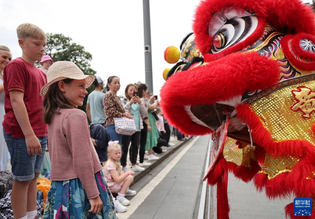 7月17日,在英国苏格兰爱丁堡,一名女孩观看舞狮表演。