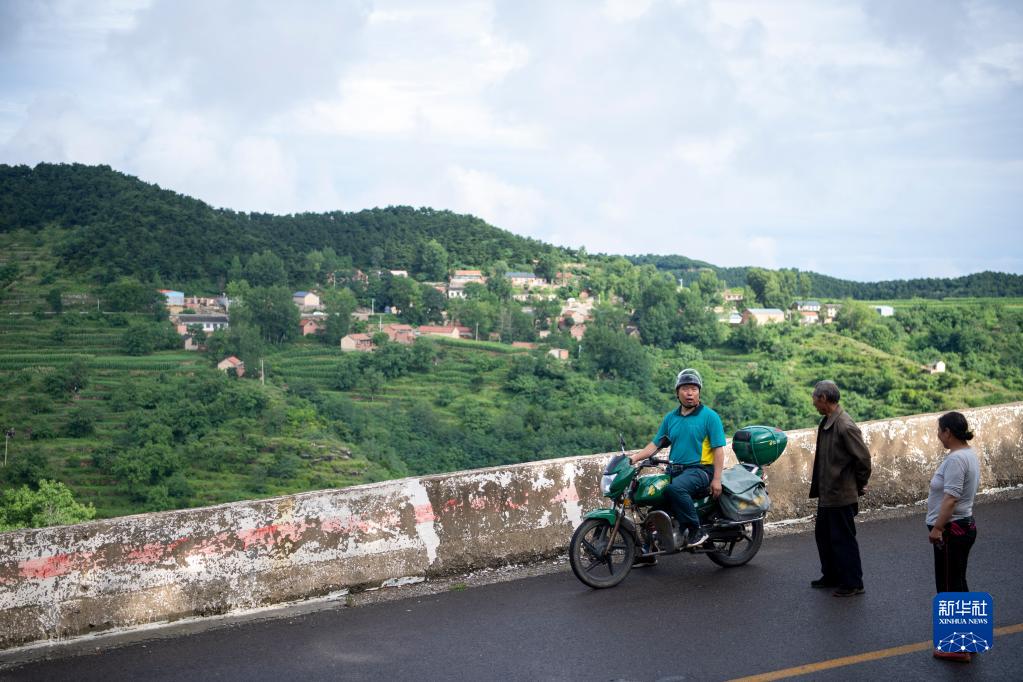 在山西省壶关县大峡谷镇壶陵水村,赵月芳和村民聊天(7月13日摄)。新华社记者 杨晨光 摄