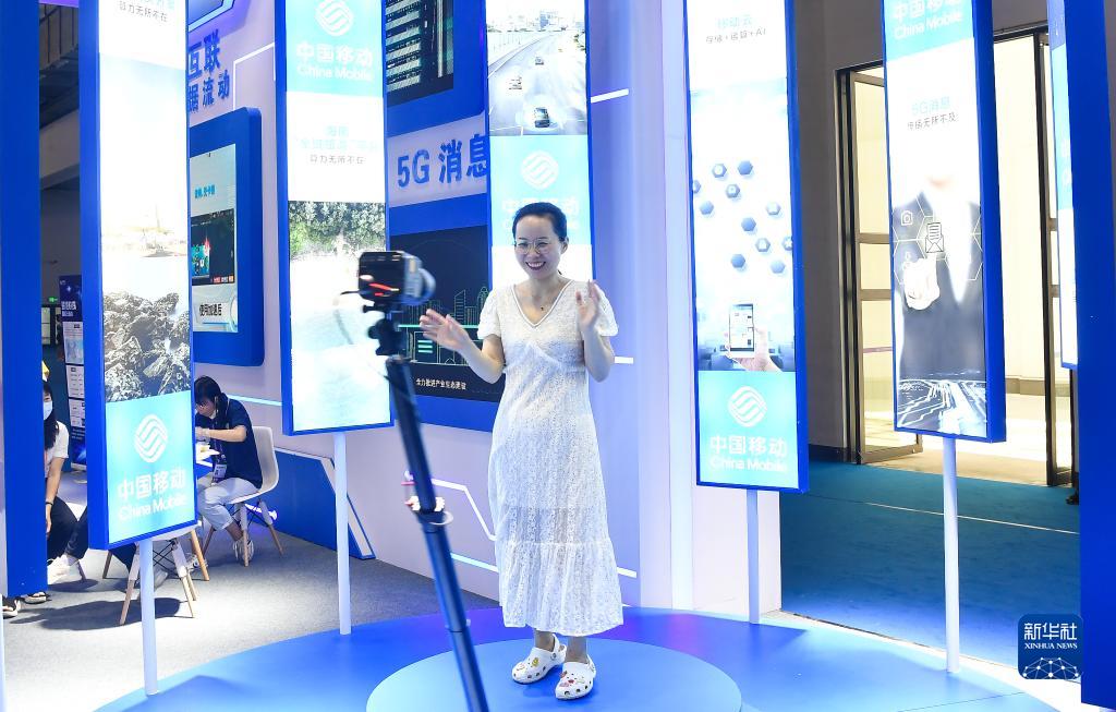 7月27日,观众在消博会现场体验全新短视频互动拍摄设备“360度酷拍”。