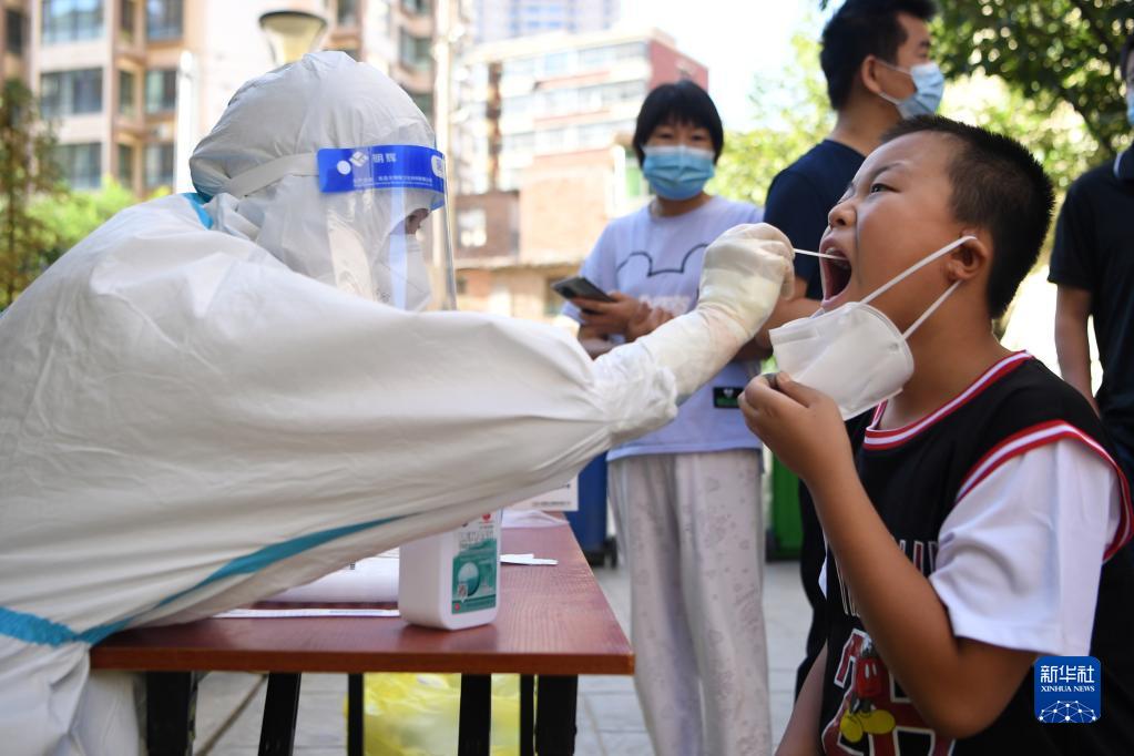 7月27日,医护人员在兰州市城关区一小区为居民进行核酸检测。