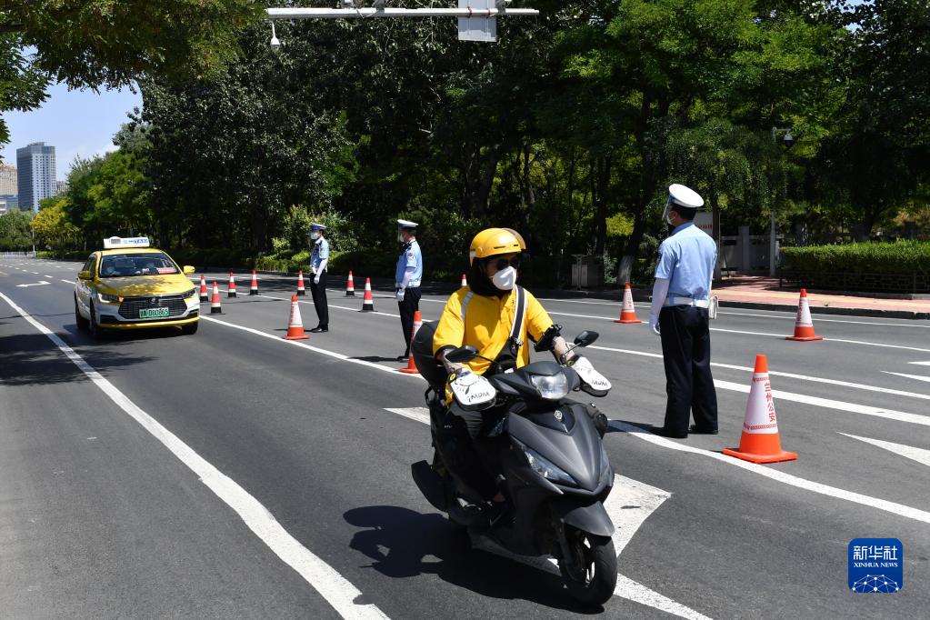 7月27日,交警在兰州市城关区一处防疫执勤点工作。