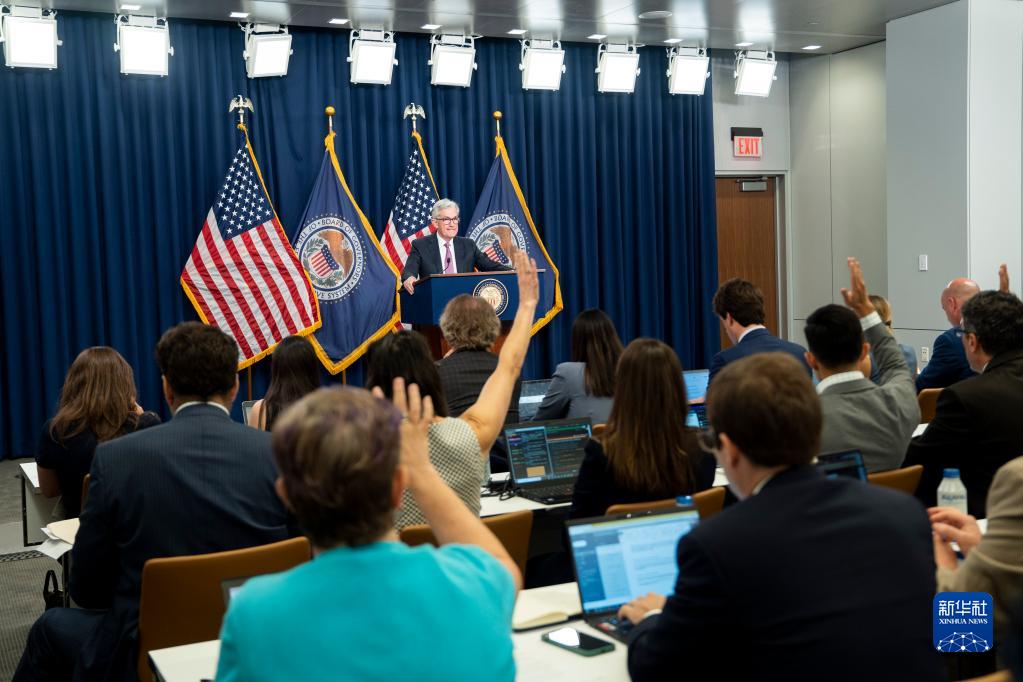美国联邦储备委员会27日宣布加息75个基点,将联邦基金利率目标区间上调到2.25%至2.5%之间。这是美联储今年以来第四次加息,也是连续第二次加息75个基点。新华社记者刘杰摄