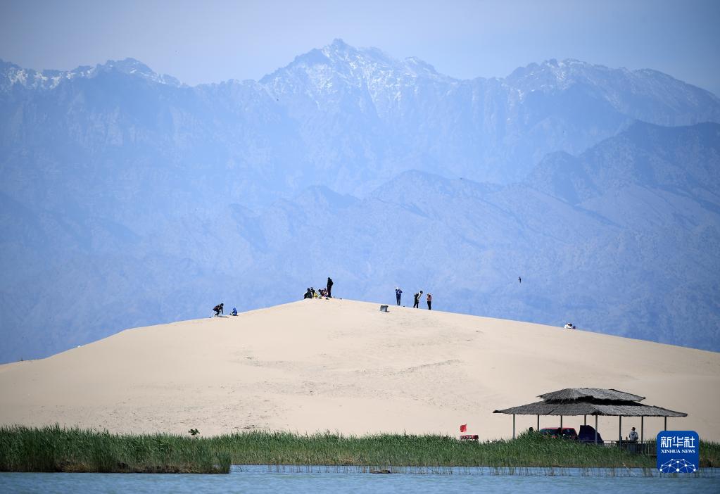 游客在宁夏沙湖景区游玩(2022年4月30日摄)。