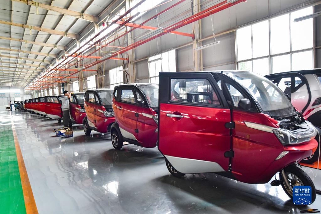 8月31日,在山东省青州市经济开发区,一家电动车制造企业的工人在车间内忙碌。