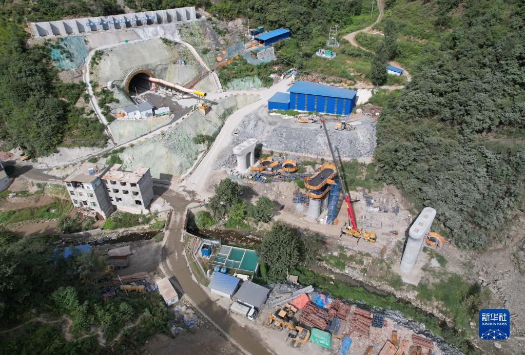 位于陕西旬阳县境内的一处西康高铁建设现场(9月6日摄,无人机照片)。