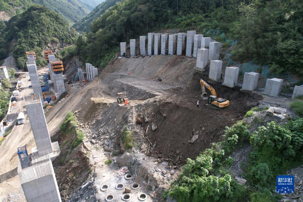 建设中的西康高铁桐木车站特大桥(9月6日摄,无人机照片)。