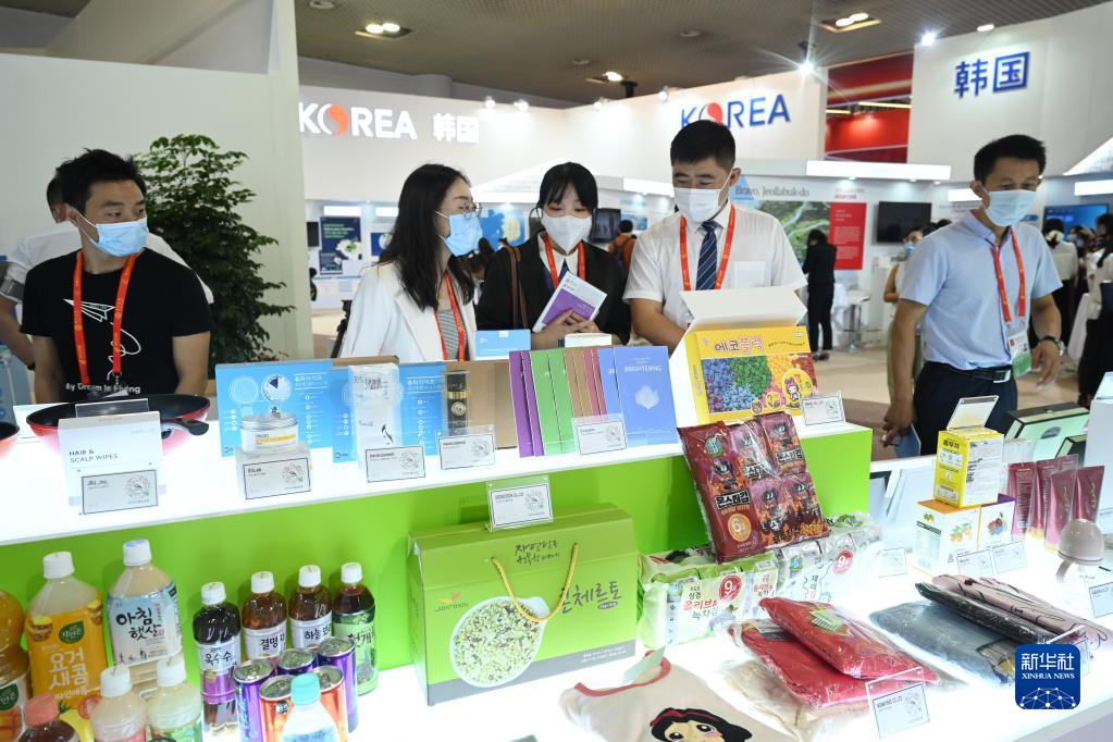 9月8日,参观者在第二十二届投洽会主宾国韩国的展位参观选购产品。