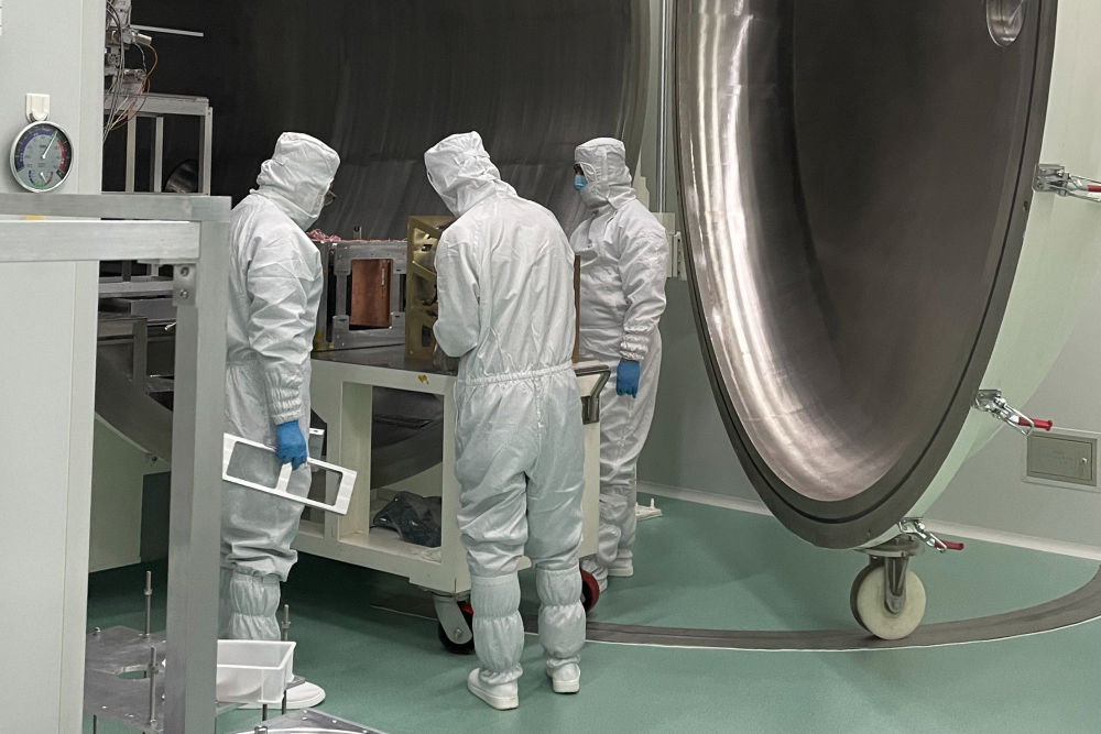 科研人员在测试龙虾眼X射线望远镜(2021年11月27日摄)。 新华社发(中科院国家天文台供图)