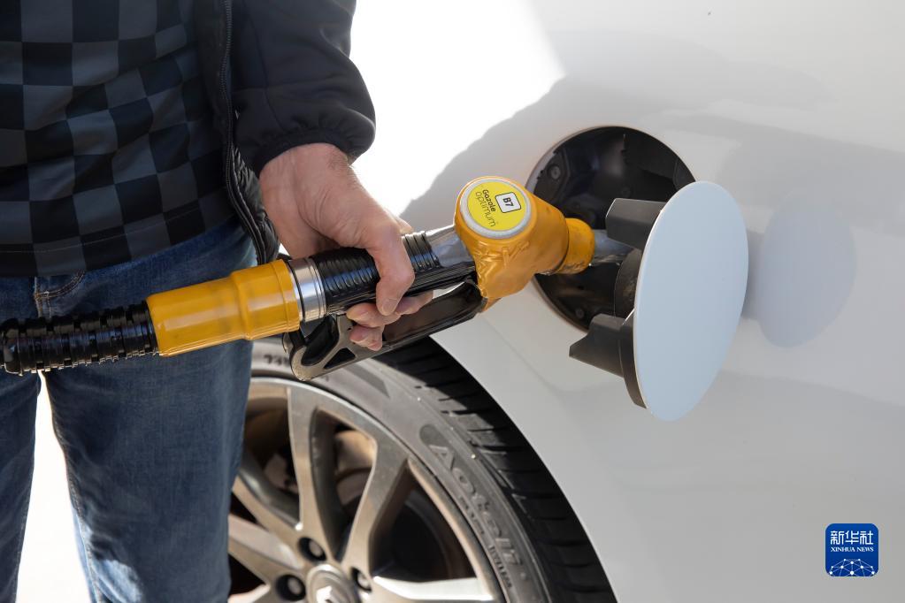 10月6日,在法国北部城市里尔,一名市民在欧尚超市的加油站加油。近日,法国道达尔集团旗下的许多加油站因燃油供应中断而暂时关闭,导致其他加油站前排起长龙。