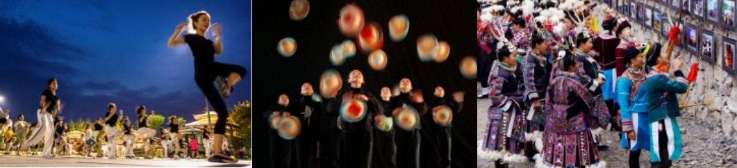 坚持以社会主义核心价值观引领文化建设,注重用社会主义先进文化、革命文化、中华优秀传统文化培根铸魂,广大文艺工作者从丰厚的历史文化积淀中汲取营养,从火热的现实生活中寻找灵感,弘扬优秀传统文化与革命精神,聚焦新征程,讴歌新时代,用心用情用功创作出高质量的精品力作。何小凤《歌舞新生活》反映的是为迎接党的二十大召开,艺术家把文化娱乐送到广大人民群众身边。作者选用低机位仰拍精彩的舞蹈表演,获得了画面中的视觉精彩。向荣的《陕西传统民俗“协税社火”》将协税高跷社火的“高、巧、奇、险、美、趣、斗”特点表现得淋漓尽致。吴佳宜的《梦想舞台》抓取到的是职工文化娱乐生活的瞬间。于传利《舞动的夏夜》记录了人们在炎炎夏日的傍晚在街头公园歌舞的欢乐场景。陈建源的作品《苗族影展》拍摄于贵州省苗族祭尤节,苗家的影展记录了多彩丰富苗寨风情的生活纪实,满满的正能量,吸引了众多苗家女子。这些作品从不同侧面展示了人民精神文化生活的极大丰富。