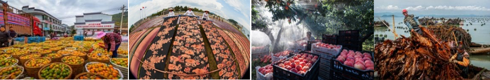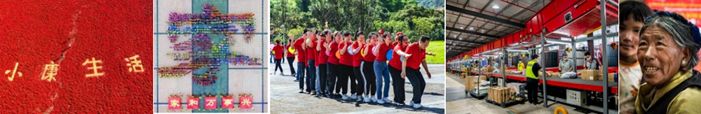 经过全党全国各族人民共同努力,我国脱贫攻坚战取得了全面胜利,贫困人口全部脱贫,贫困县全部摘帽,贫困村全部出列,实现了全面小康社会的庄严承诺,创造了又一个彪炳史册的人间奇迹!叶泓的《渔电互补新农村》是一件表现脱贫攻坚奔小康的好作品。作者选择了非常好的角度完成创作,水陆各半的画面中,飘带般的水岸,分割了水中的太阳能板与陆上的新村,黄蓝之间一派欣欣向荣,让人感到耳目一新。村级光伏扶贫电站并网发电,让渔电互补模式形成了良好的经济效益。深蓝色的光伏面板与乡村新居构成一道亮丽的风景线。近年来,我国全面完成光伏扶贫工程,累计建成装机2636万千瓦,惠及10万个村、415万贫困户。潘炳的《脱贫后的笑脸(组照)》表现的是绽放开心笑容的村民,通过脱贫攻坚,依靠自己勤劳的双手,走上了强村富民的小康之路。杨建科的《万寿菊开出致富花》,依山而上的梯田,都是密密层层的万寿菊,一片片橘色的“花海”,象征人民幸福生活的长长久久。黄明球的《喧哗的渔港(组照)》反映了渔港人勤劳、朴实、勇敢的劳动精神换来渔船满载而归。吴宗宝的《致富“花”开》把饲养的鸭拍成了一组菊花,既展现了致富成果,也预示花一样的前景。陈锦辉的《女红》、菊花的《各显其能》、李红的《彝族绣娘》、姜自立的《编织致富梦》表现的是勤劳致富的各民族妇女。姚让和的《打造中国西部茧丝绸织造新城(组照)》定格广西确定县广西茧丝绸全产业链示范园。王庆禄的《农林牧副渔各业兴旺(组照)》展示的是农林牧副渔各业兴旺的场景。房玉峰的《丰收的喜悦》、谭英的《又是一个丰收年》通过水果和海产品的丰收表现了劳动人民获得丰收的喜悦。