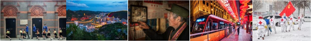 汤新民的《阳光下》捕捉到带着红领巾的孩子们经过一大会址的瞬间,凸显了当代语境下红色历史的赓续。杨乐的《新时代延安》展现了延安从“红色”走向“绿色”。当初的延安是在民族存亡危难时刻,红色力量力挽狂澜于华夏。如今延安从经济发展走向绿色的生态文明之路。王军《致敬英雄(组照)》是红色精神传承的作品,从抗美援朝老兵的今天,追叙红色基因,牢记使命担当,继承和弘扬抗美援朝的爱国主义精神和革命英雄主义精神。谈敏华的《最美上海红色专列(组照)》聚焦庆祝建党百年,全国劳模方进驾驶最美上海红色之旅专列,主题宣传党史知识。卜晓黎的《身向前心向党》表现的是有党的指引,我们不会迷路,有党的领导,我们勇往直前。风雪挡不住我们的脚步,灾祸困难无所畏惧,坚决跟党走,永远不动摇。党的十九届六中全会通过的《中共中央关于党的百年奋斗重大成就和历史经验的决议》指出:“党领导人民成功走出中国式现代化道路,创造了人类文明新形态,拓展了发展中国家走向现代化的途径,给世界上那些既希望加快发展又希望保持自身独立性的国家和民族提供了全新选择。”正因为有党的领导,凝聚了全国各民族民心民意,才是实现中华民族伟大复兴的根本保证。