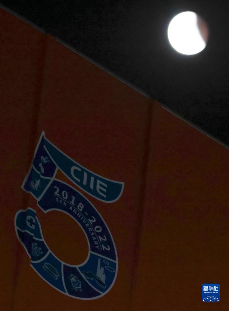 这是11月8日在国家会展中心(上海)拍摄的月食。