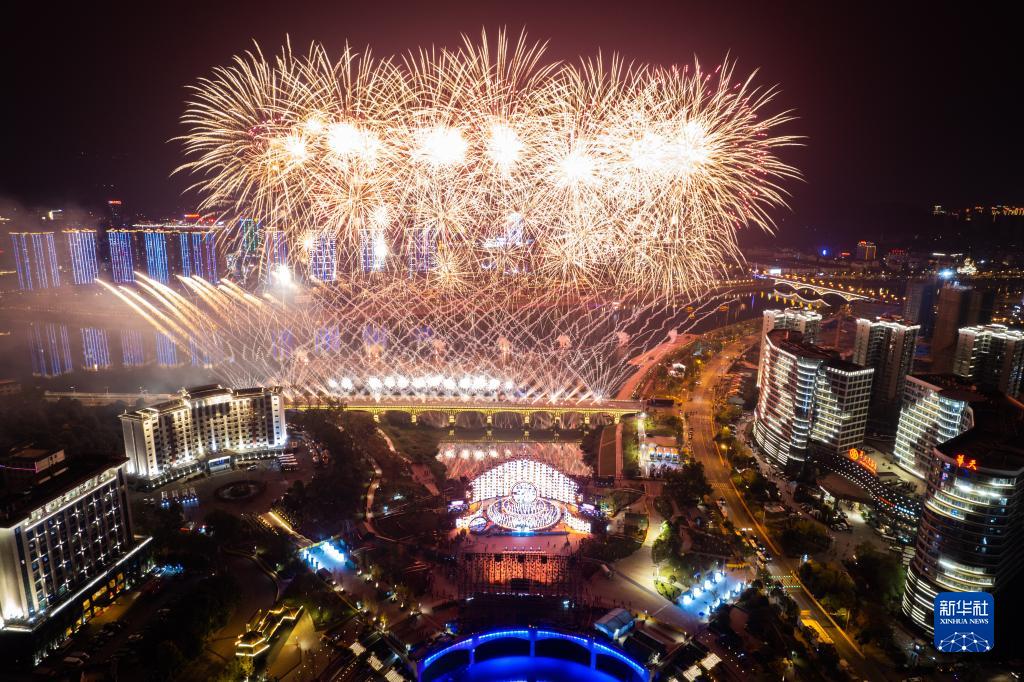 这是11月19日拍摄的首届湖南旅游发展大会开幕式现场(无人机照片)。
